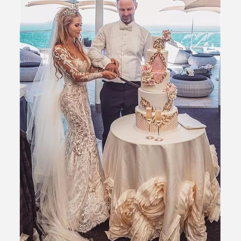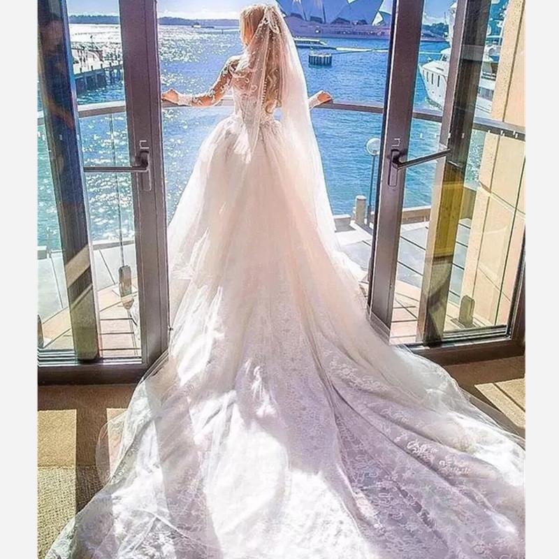 Modest Long Sleeves Wedding Gown Mermaid with Detachable Chapel Train Plus Size Lace Applique Crystal