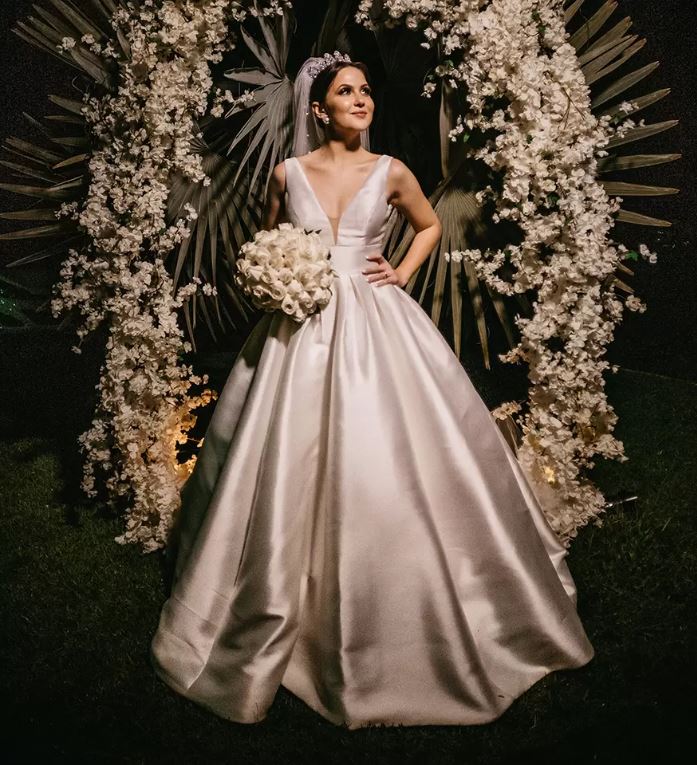 A-Line Wedding Dresses for Bride, V Neckline Sleeveless Plus Size Satin Bridal Gown with Corset Back