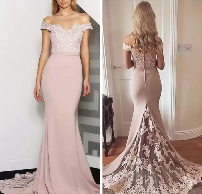 Off Shoulder Slim Mermaid Bridesmaids Dresses Lace Appliques Plus Size Formal Maid of Prom Gowns