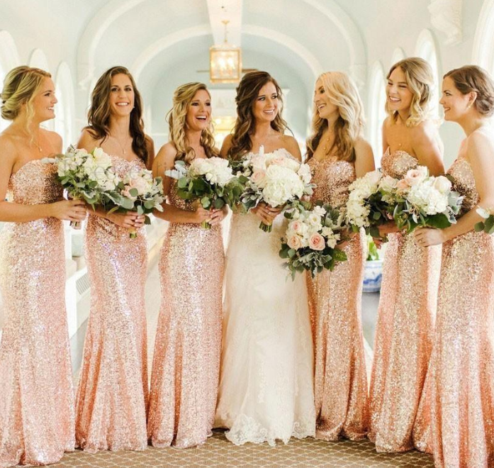 Rose Gold Sequins Mermaid Bridesmaid Dresses Cheap Custom Made Sweetheart Long Wedding Guest Dress Evening Party Gowns