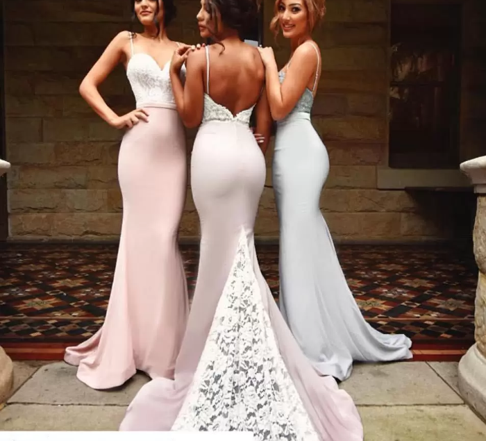 Spaghetti Mermaid Bridesmaid Dresses Vintage Lace Train Summer Beach Maid of Prom Gowns