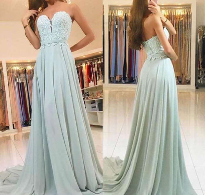 Unique Sweetheart Mint Green Long Bridesmaid Dresses Cheap A Line Chiffon Applique Lace Backless Maid Of honor Party Gowns
