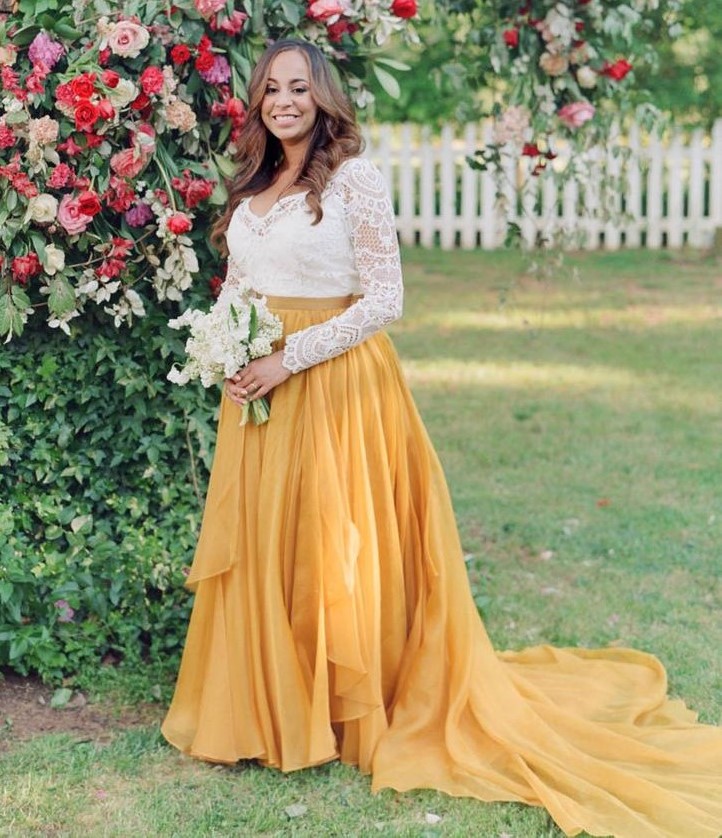 Bohemian wedding dress, simple lace long sleeve wedding dress