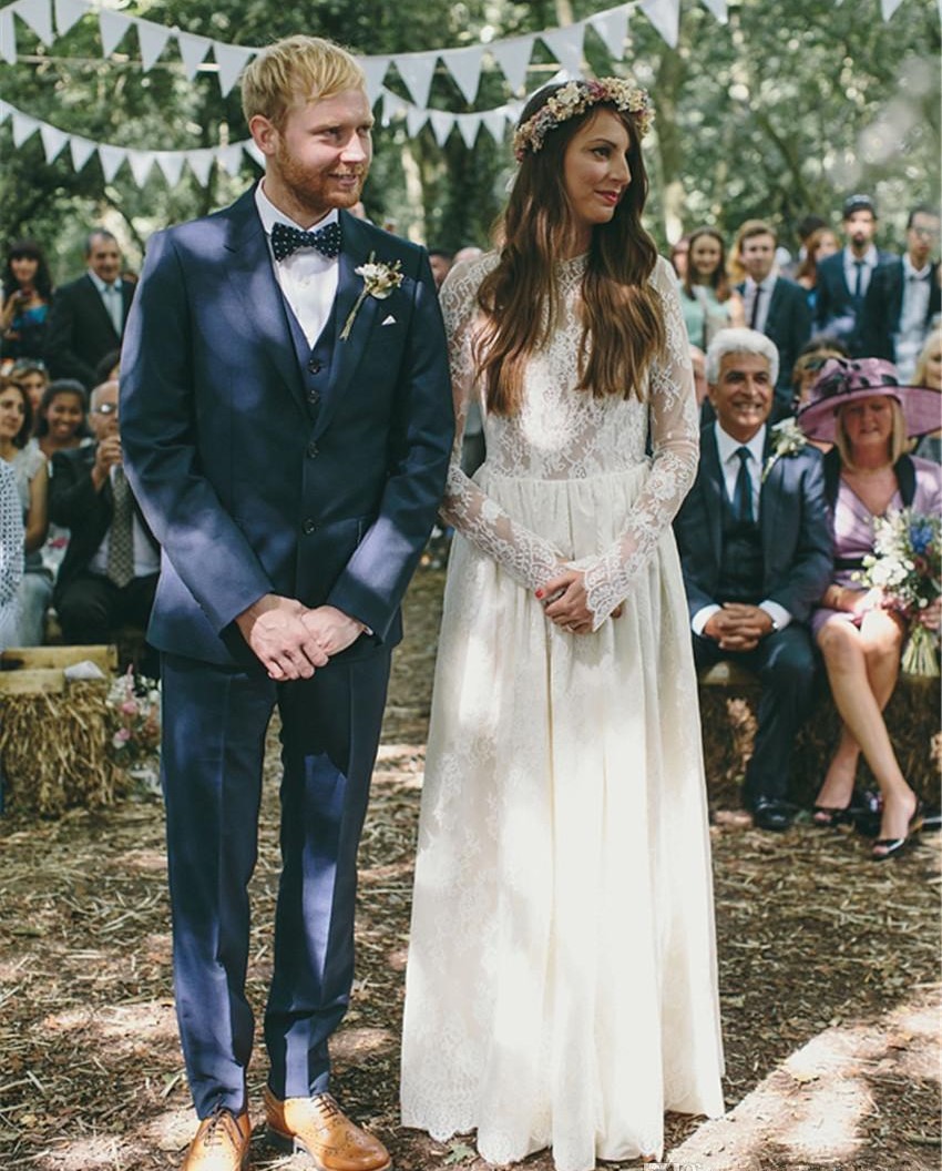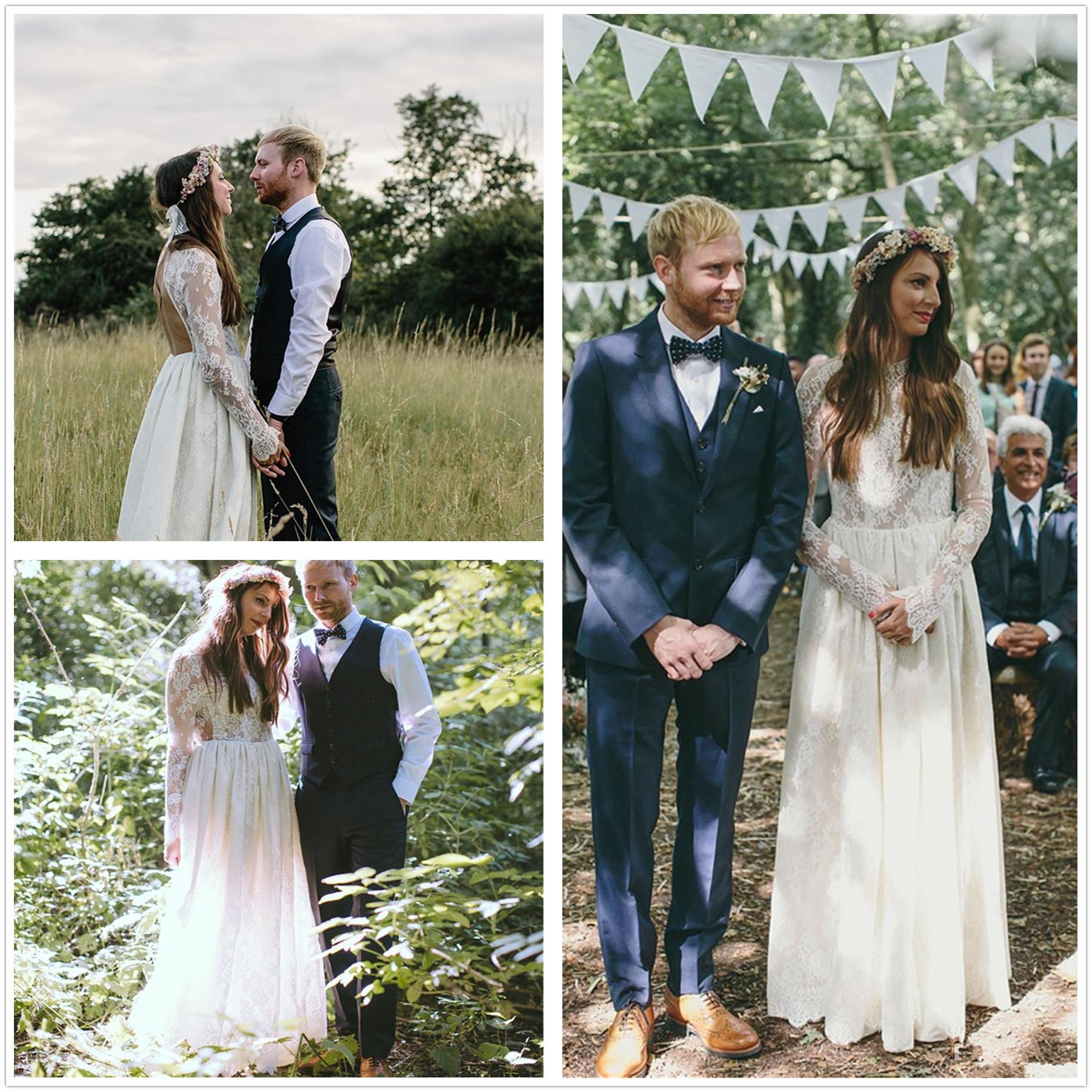 Boho Wedding Dresses Jewel Hollow Back Long Sleeve A Line Lace Floor Length Beach Country Bohemian Bridal Gowns