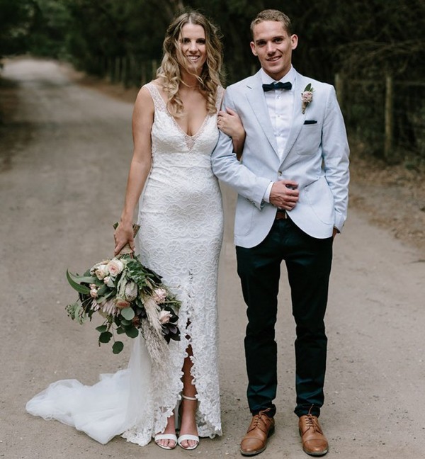 White Bohemian Lace Wedding Dress Deep V-Neck Sheath Wedding Gowns