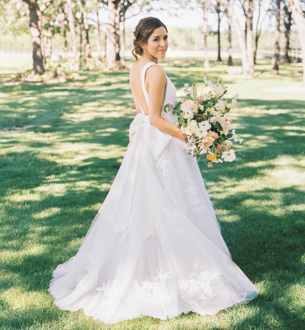 Ball Gown Tulle Wedding Dresses Deep V Neck Appliques Garden Bridal Gowns