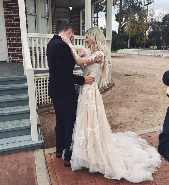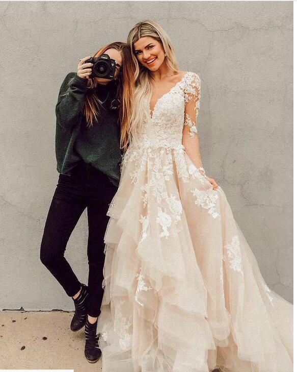 Champagne Bohemian A Line Lace Wedding Dresses Backless Country Wedding Bridal Gowns