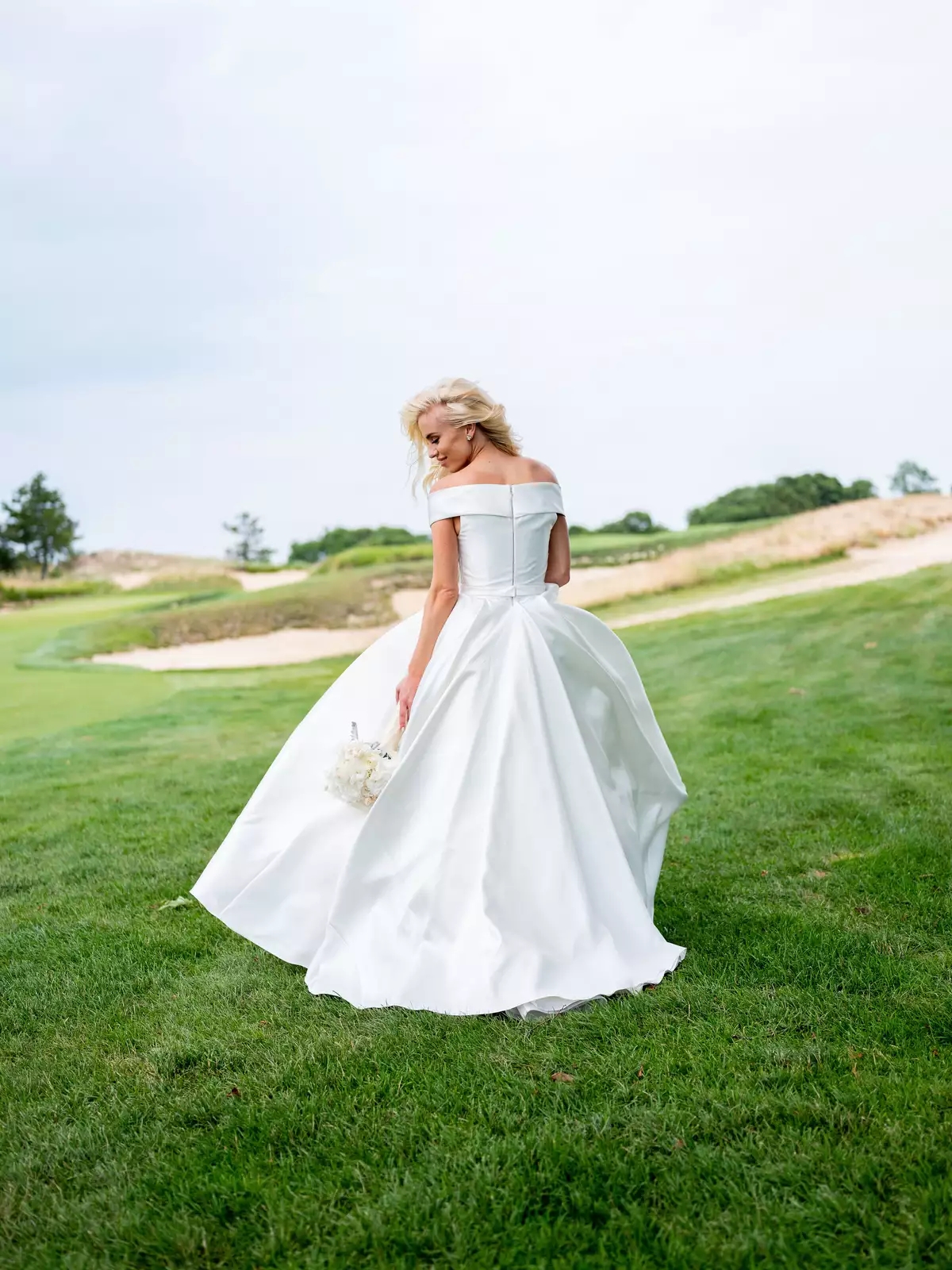 Charming A-Line Off the Shoulder White Satin Wedding Dress
