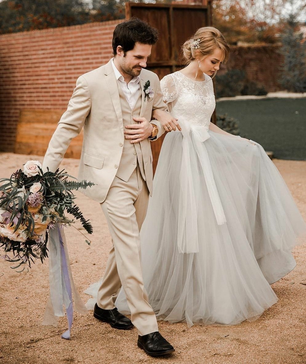 Dusty Tulle Lace Short Sleeves Wedding Dress