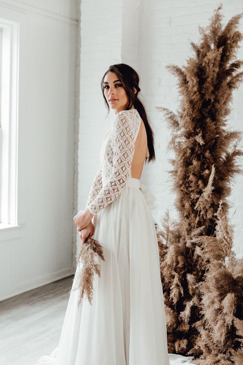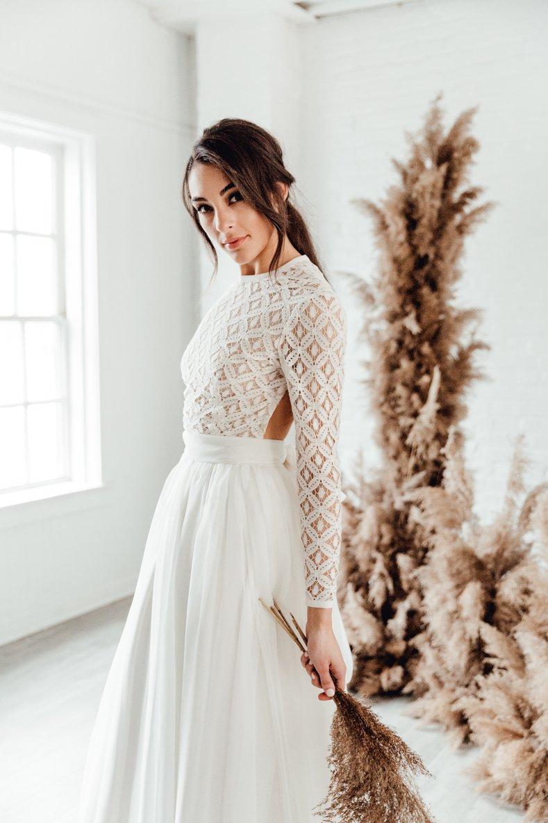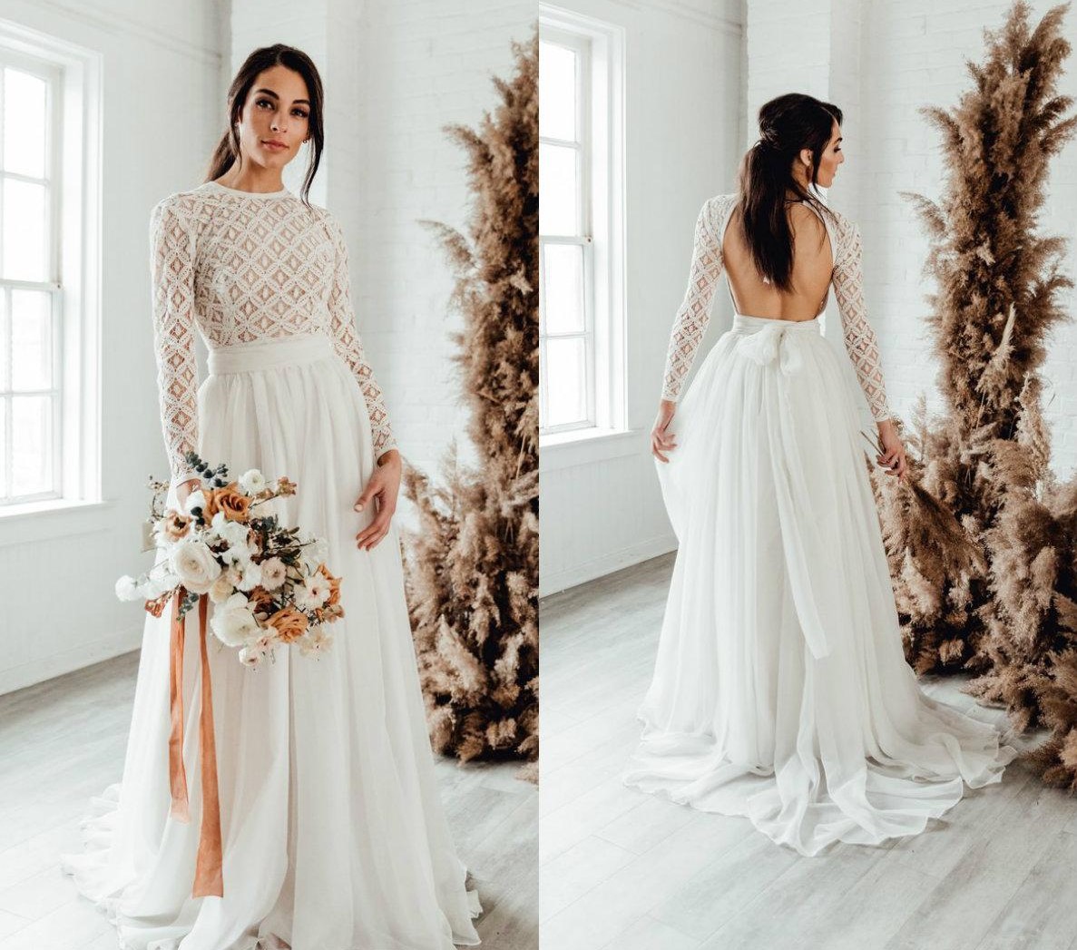 Vintage Boho Wedding Dresses Jewel Neck Lace Appliqued Tulle A Line Long Sleeves Gothic Wedding Dress