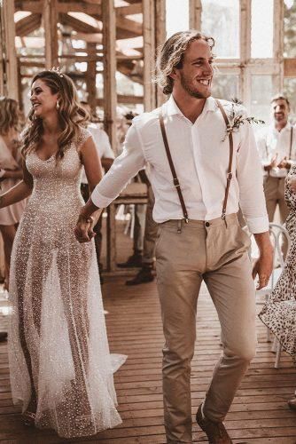 Sparkly A-line V Neck Open Back Sequin Outdoors Wedding Dress
