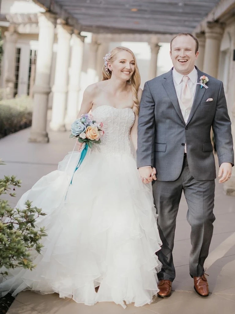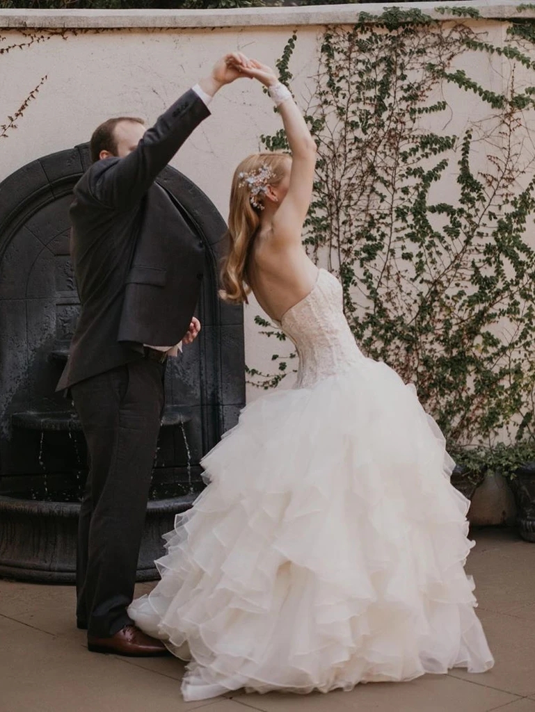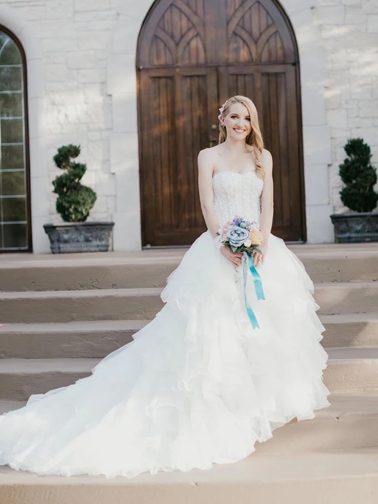 Simple Strapless Sweetheart Tulle Tiered Princess Wedding Dress