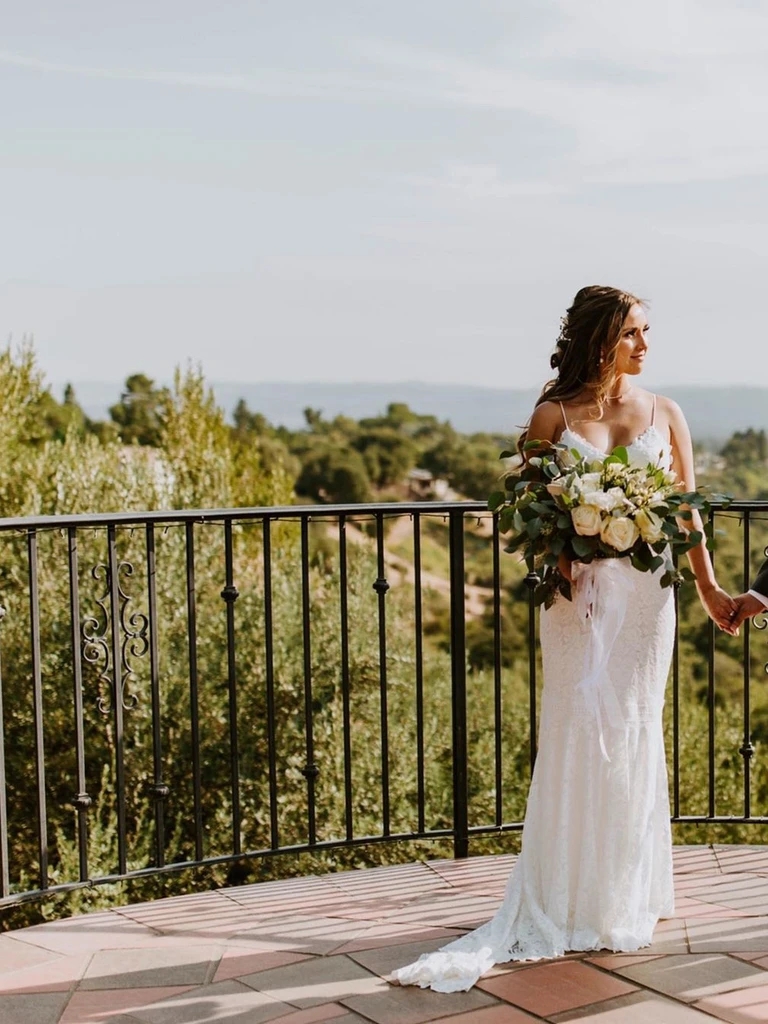 Simple Lace Spaghetti Straps V-Neck Sheath Wedding Dress