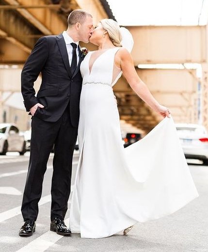 Elegant Sheath V Neck Open back White Satin Wedding Dress