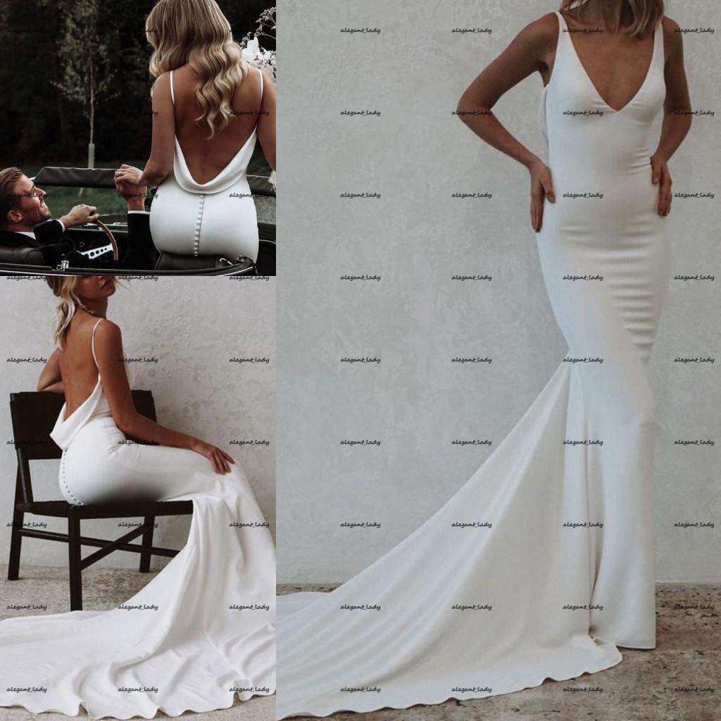 Flexible Crepe stain Mermaid Wedding Dresses simple backless sweep train bohemian country beach modest bridal gowns