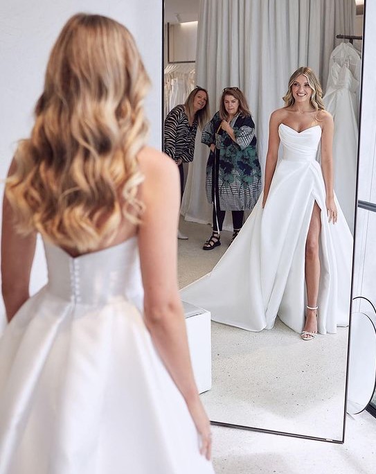 Gorgeous A-Line Strapless White Satin Wedding Dress