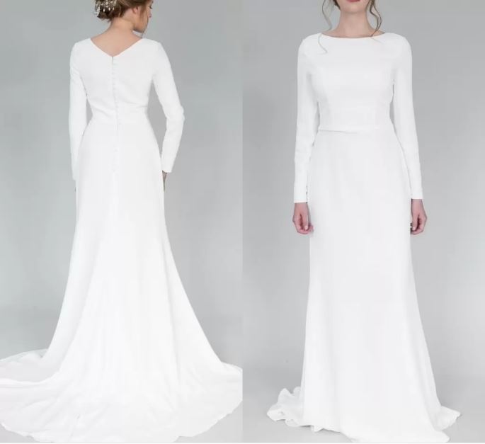 Mermaid Long Sleeves Modest Wedding Dresses With Sleeves Boat Neck Full Sleeves Simple Informal LDS Temple Bridal Gowns