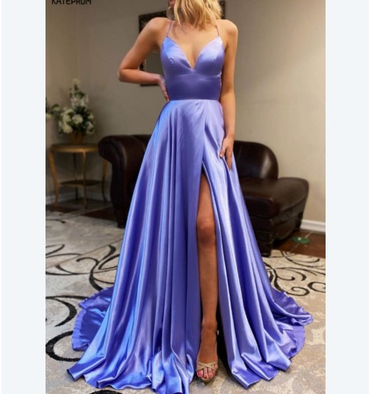 Charming V Neck Spaghetti Straps A Line Prom Dress With Split