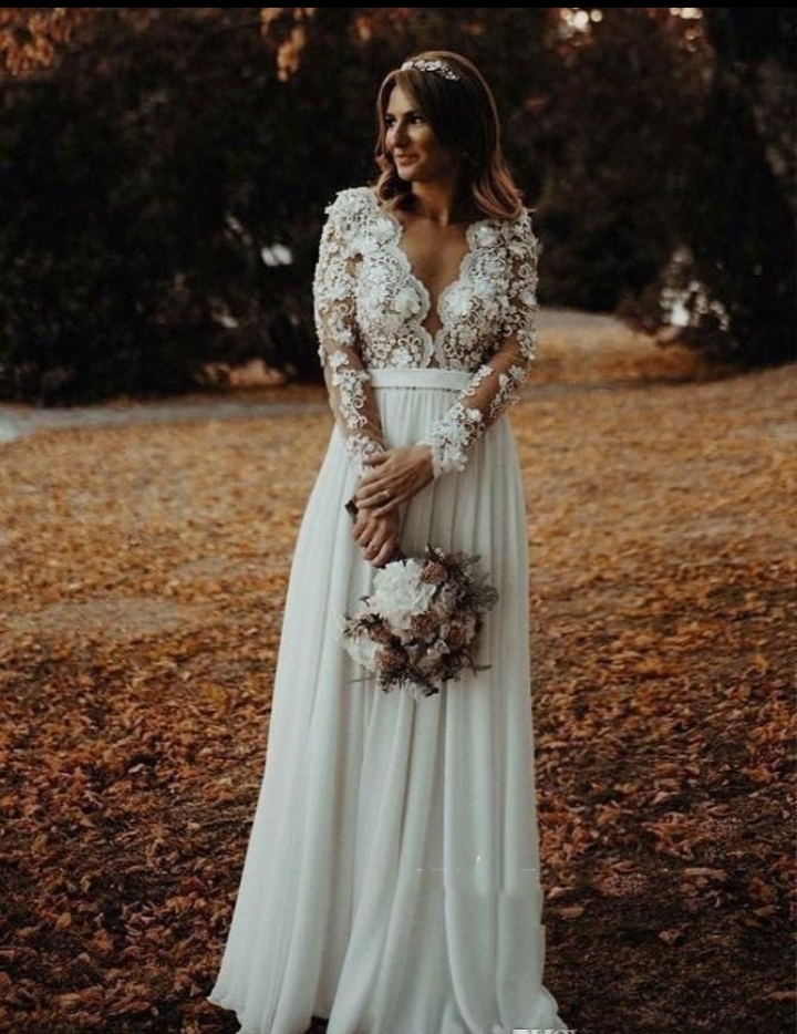 Lace Appliqued Plus Size Bohemian Wedding Dress Cheap Long Sleeves V Neck Chiffon Beach Boho Bridal Gownlace country garden wedding dress