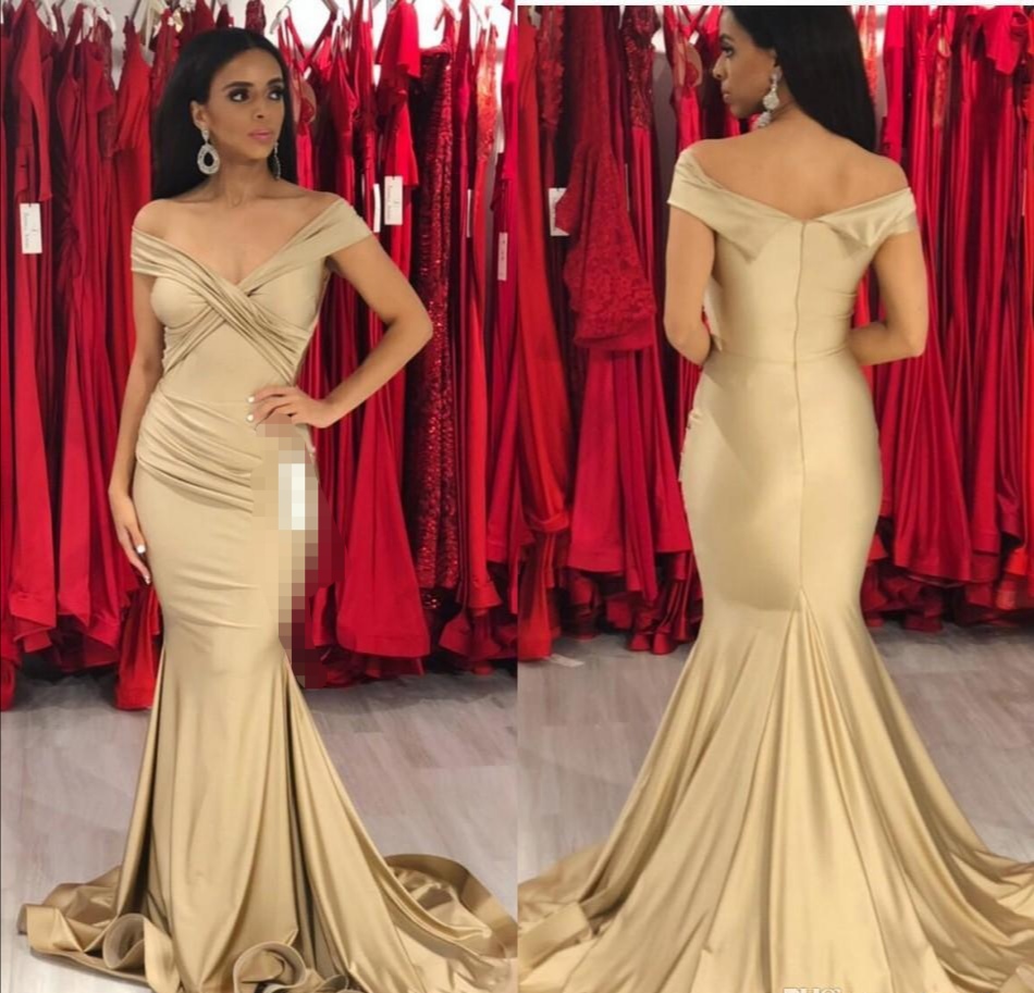 Champagne Prom Dresses Sexy Backless Off Shoulder Mermaid Long Evening Gowns