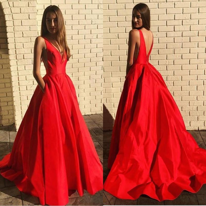 Satin Ball Gown Formal Prom Dresses Illusion V-neck Back Party Evening Dress Appliqued A Line Formal Women Dresses