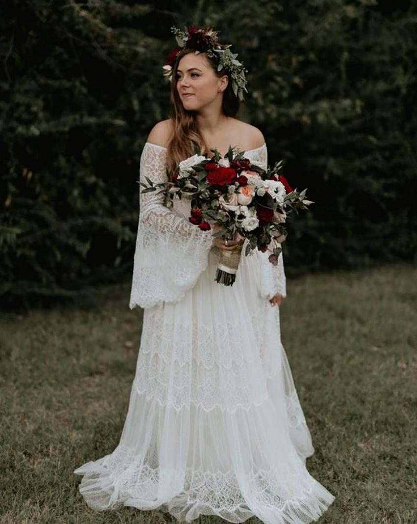 Bohemian Plus Size Lace Wedding Dresses With Long Sleeves Off The Shoulder Beach Bridal Gowns