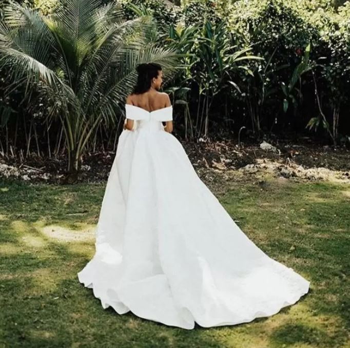 Elegant Country Garden Boho Bohemian A Line Wedding Gowns Off Shoulder Pleats Ruched Appliques Court Train Robe de marriage Bridal Dress