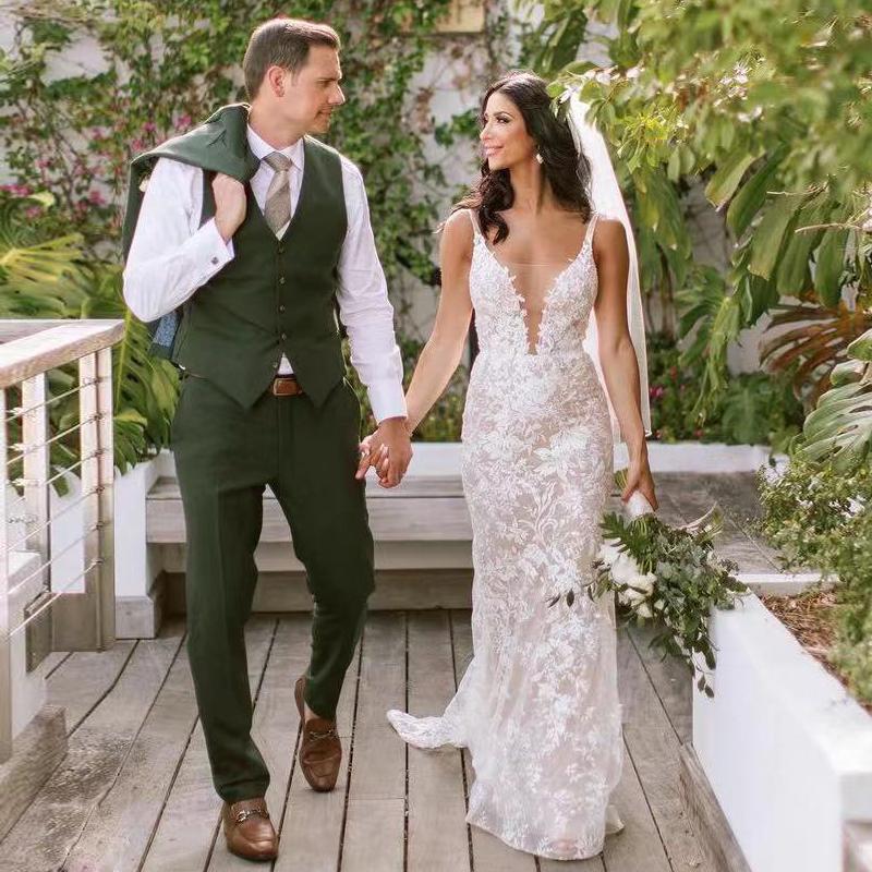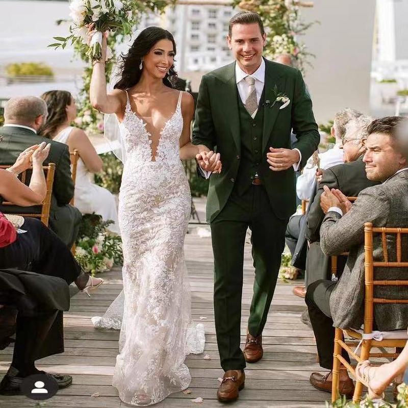 Stuning Backless Lace Wedding Dresses Spaghetti Strap Chapel Train Bohemian Bridal Gown