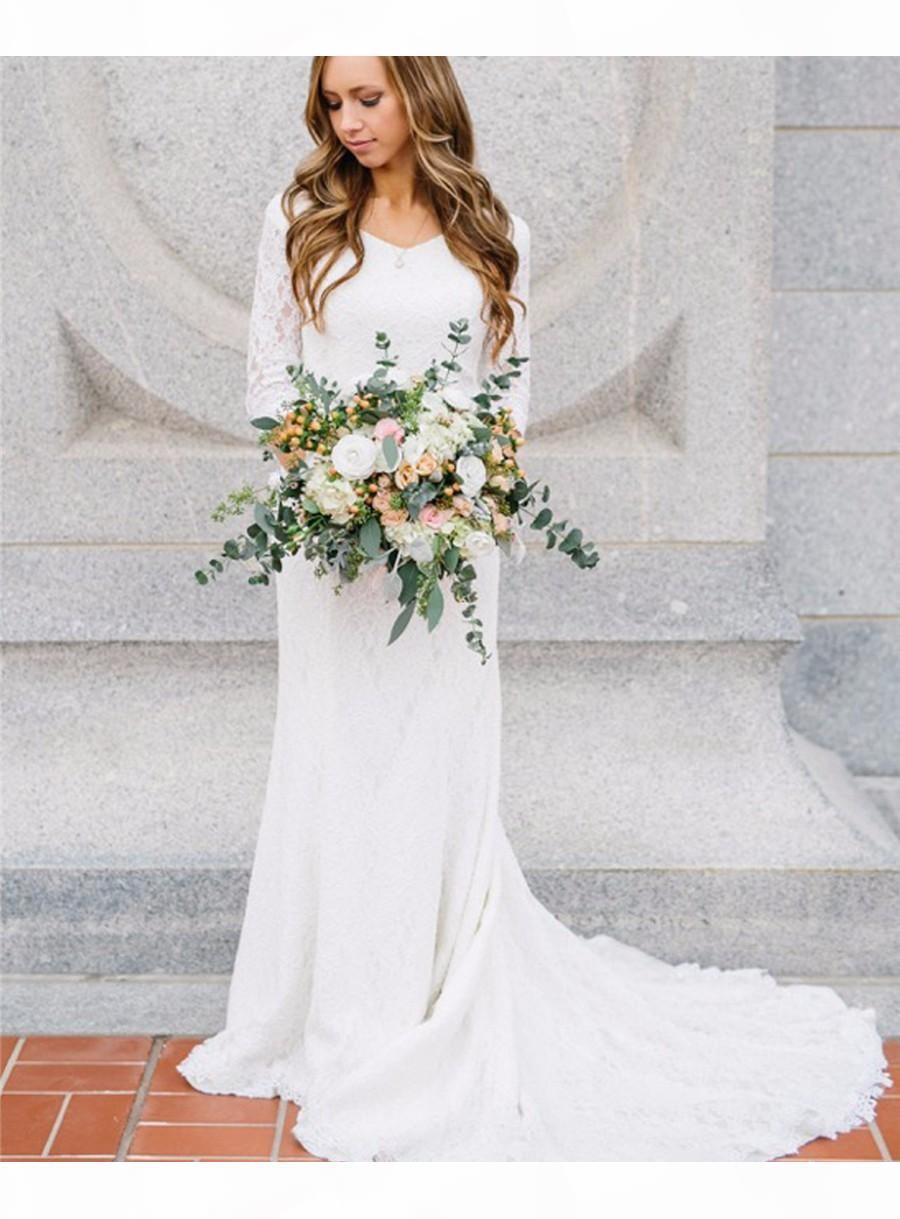 Vintage Bohemian Wedding Dresses With 3/4 Long Sleeves Lace V Neck Wedding Gowns Country Bridal Dress