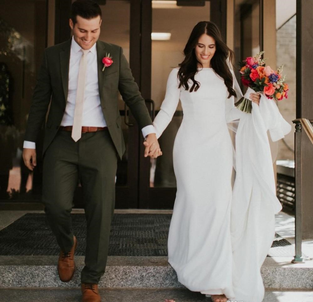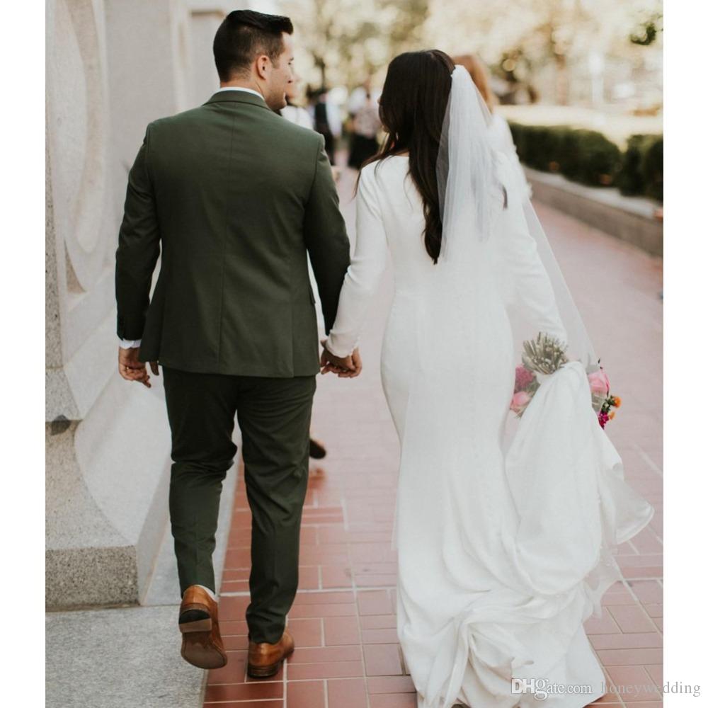 Simple Satin Mermaid Modest Wedding Dresses Long Sleeves Elegant Country Western Women Modest Bridal Gowns