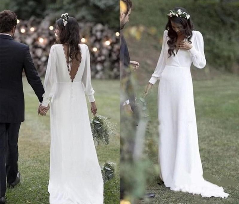 Dresses Simple Bohemian Country V-neck Backless Long Mouwen Beach Plus Size Wedding Dress Up the New Goedkope