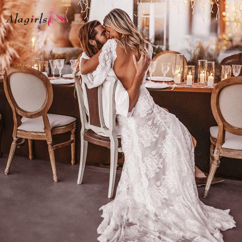Bohemian Wedding Dresses Lace V-Neck Elegant Wedding Gown Boho Beach Bridal Dress