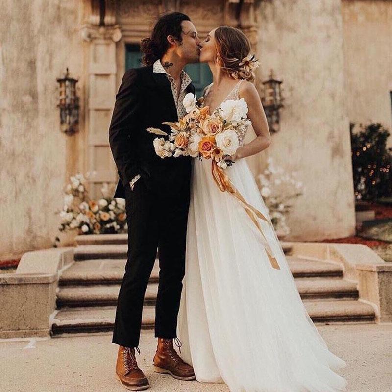 New Arrival Simple Boho Wedding Dress A Line White Ivory Tulle Pearls Beaded Princess Backless Beach Bride Wedding Gowns