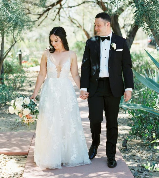 Bohemian wedding dress, lace strap v-neck wedding dress