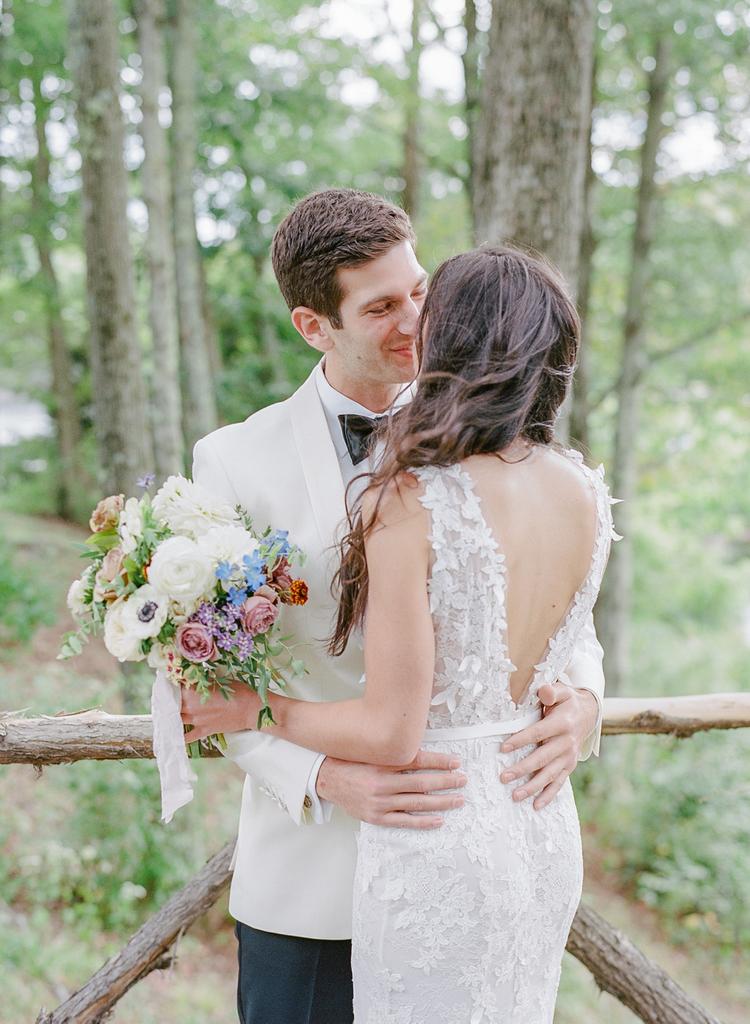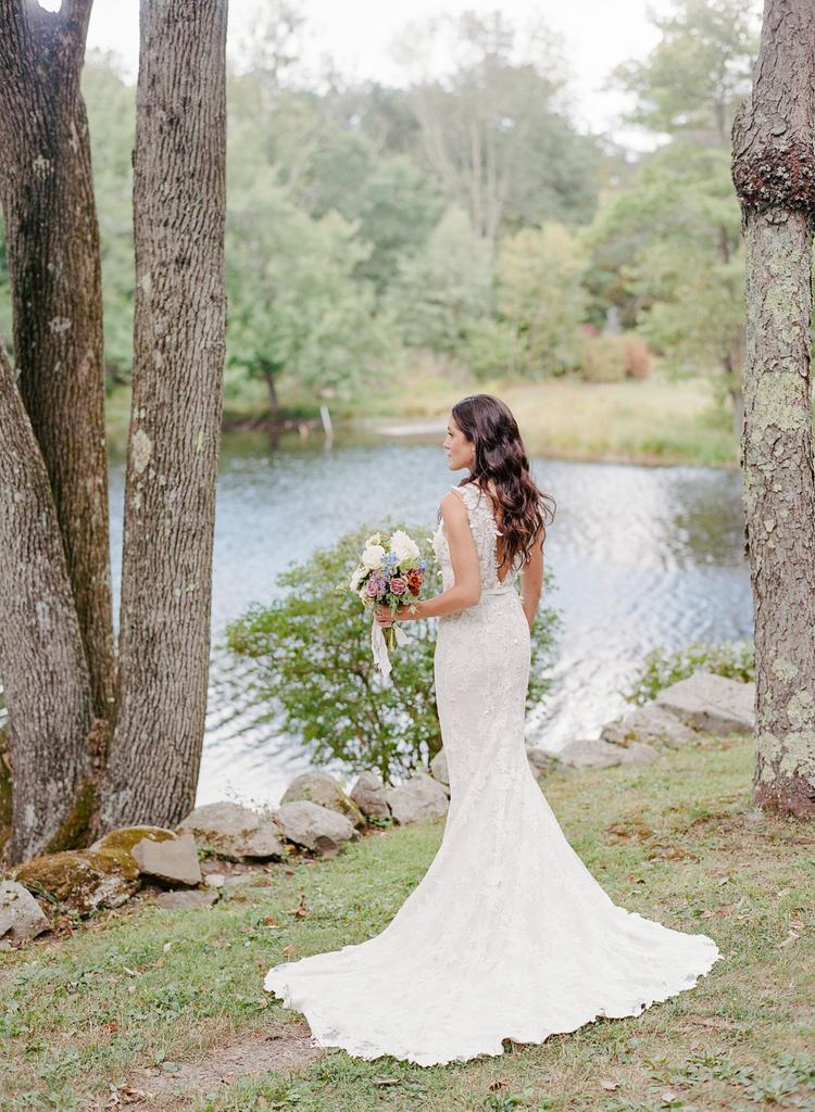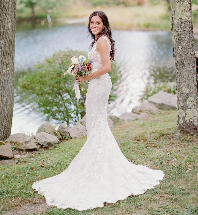 Bohemian wedding dress, elegant sleeveless deep v-neck lace wedding dress