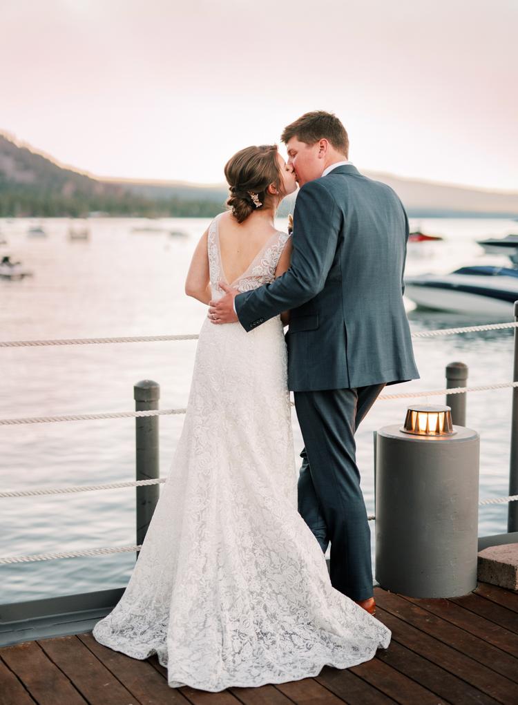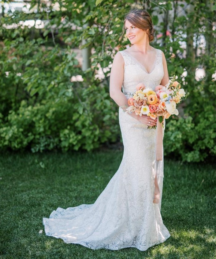 Bohemian wedding dress, luxurious sleeveless deep v-neck lace wedding dress