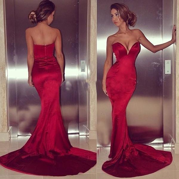 Sexy Burgundy Mermaid Prom Dress, Off the Shoulder Satin Prom Dresses