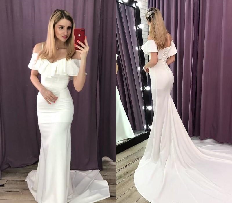 Bohemian Mermaid Luxury Wedding Dresses Satin Lace Up Formal Dress Spaghetti Short Sleeve Sweep Train Bridal Gowns