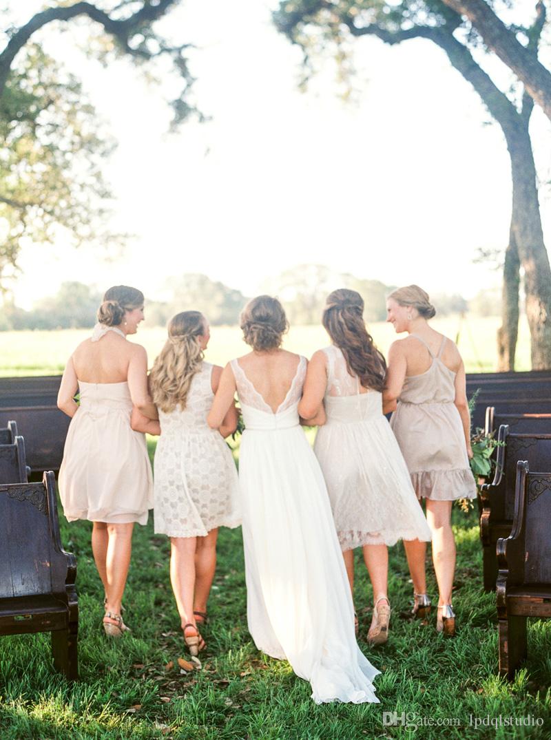 Bohemian Wedding Dresses Ivory Chiffon with Lace Sexy Wedding Dress Side Split Sweep Train Bridal Gowns