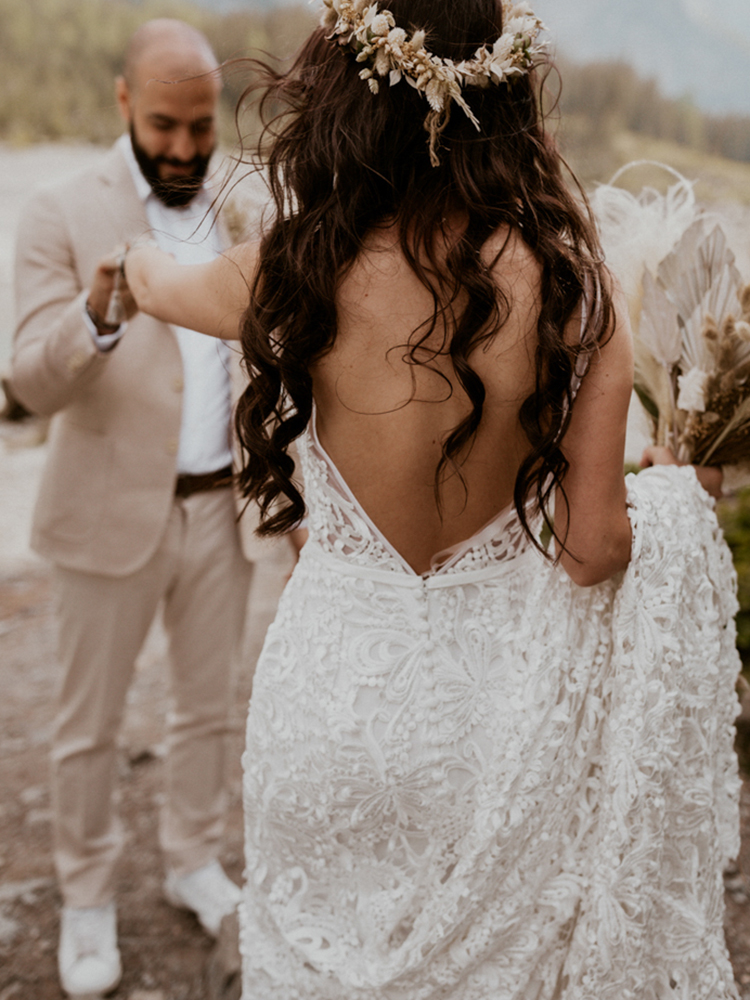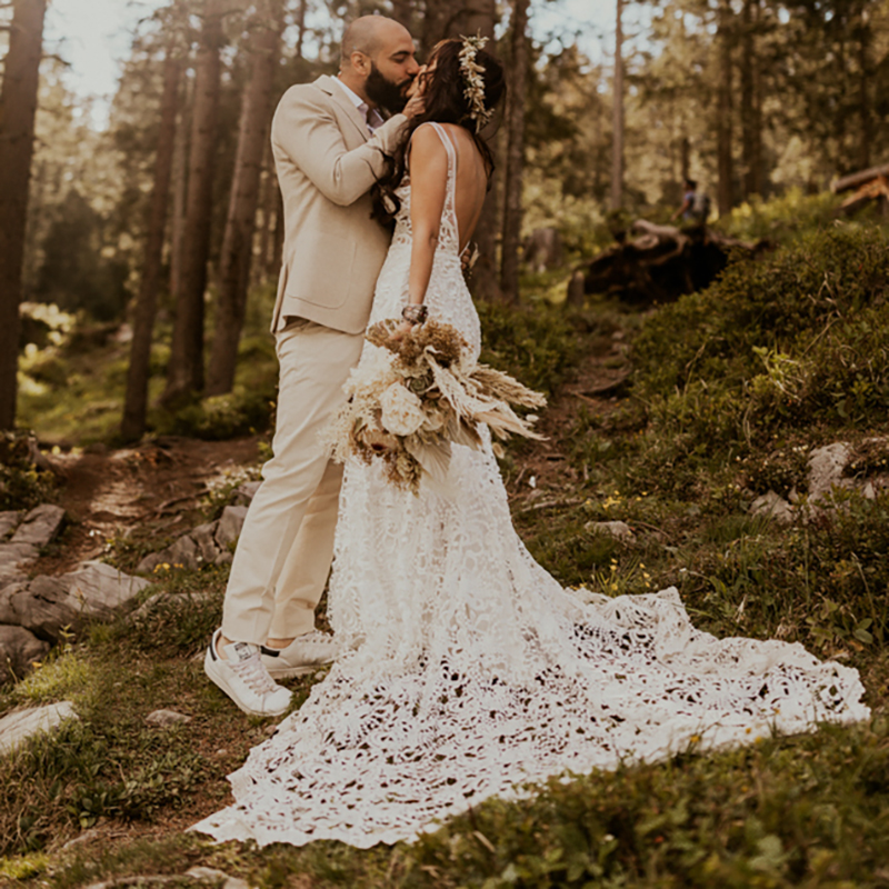 Hollow Out Lace Boho Wedding Dress Deep V Neck Custom Made Country Rustic Long Train Backless Mermaid Beach Bridal Gowns