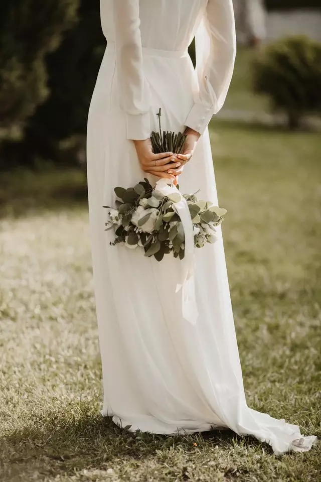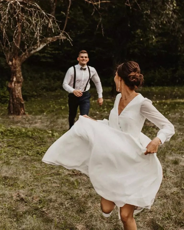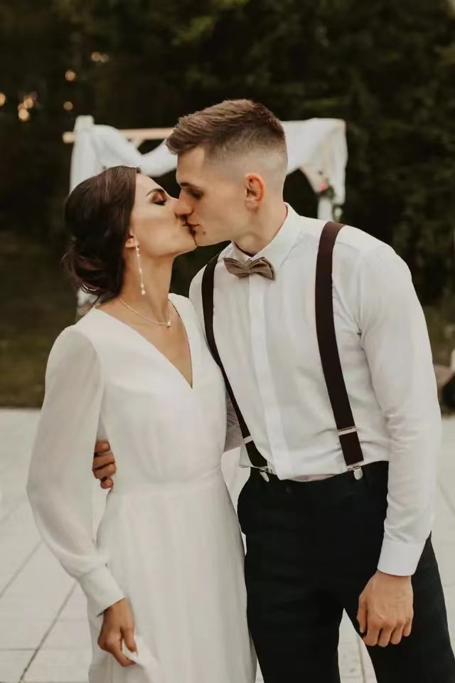 Simple A Line Chiffon Wedding Dress V Neck Long Sleeves Bohemian Bridal Dress