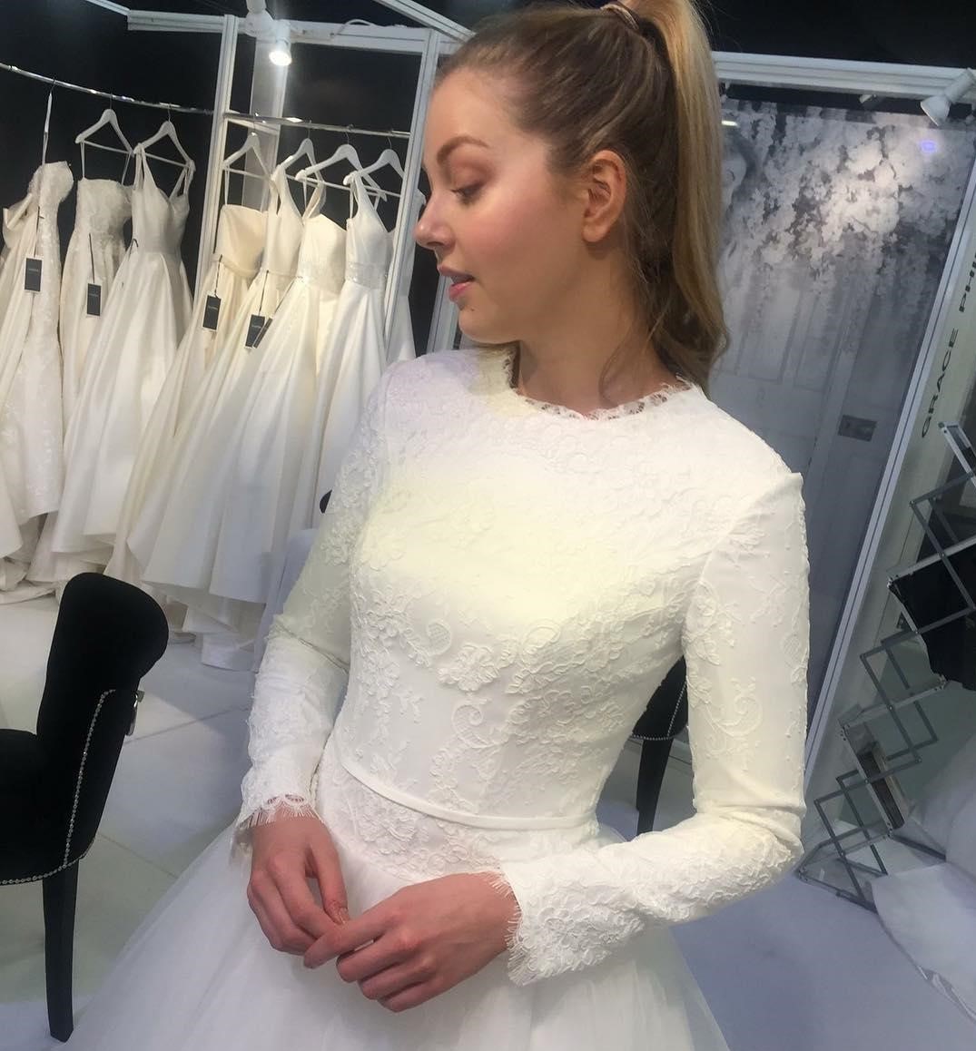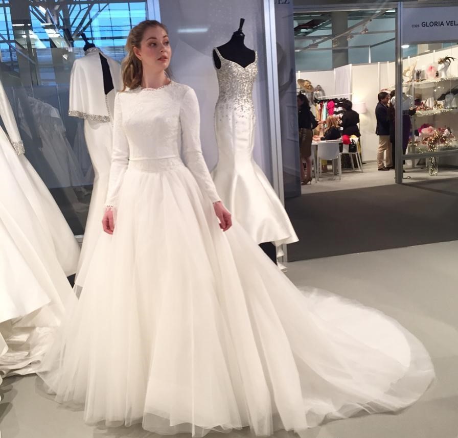 A-line Lace Tulle Muslim Vintage Wedding Dresses With Long Sleeves Lace Appliques High Jewel Neck Simple Modest Bridal Gown