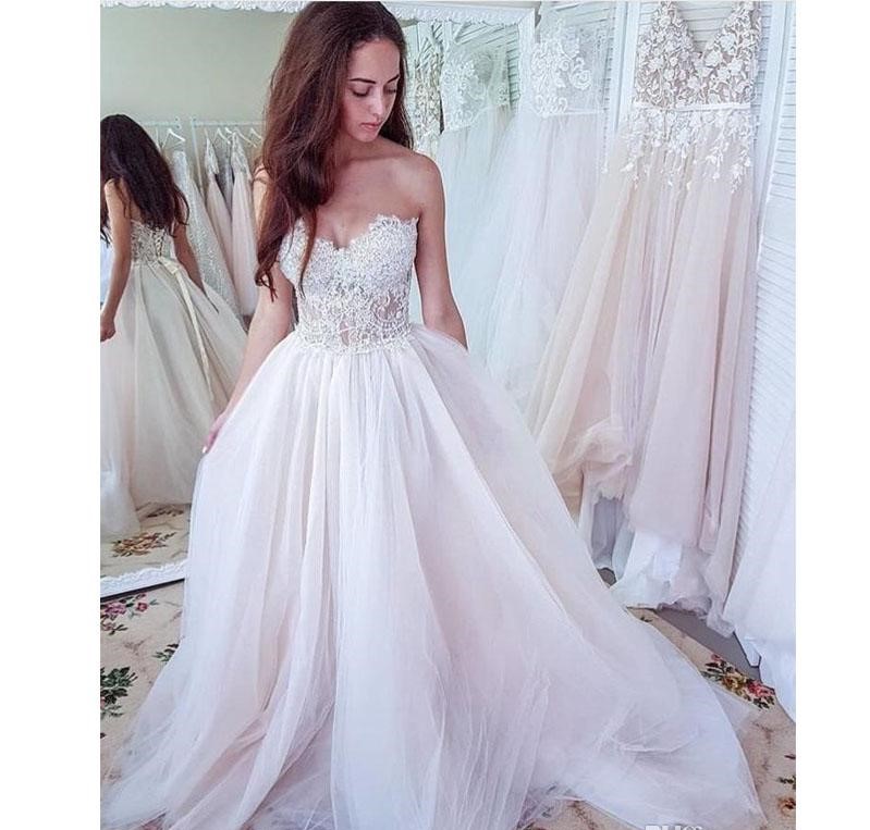 Simple Illusion Bodice Beach A-line Bridal Gowns Top Lace Bobo Wedding Dress Tiered Skirt Tulle Country Wedding Gowns