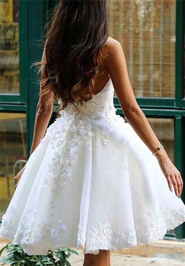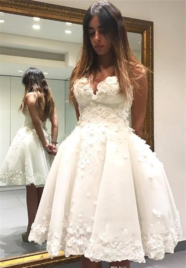 Summer Beach Wedding Dresses 3D appliques sweetheart tulle skirt lace Bridal Gowns A-line modest simple Knee length white Wedding Gowns