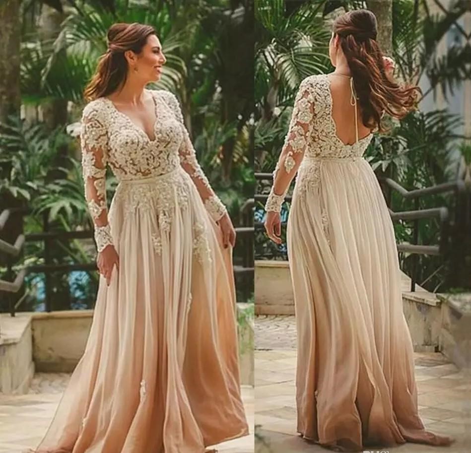 Boho Beach Sexy Deep V Neck Wedding Dresses A-Line Floor Length Bridal Gown