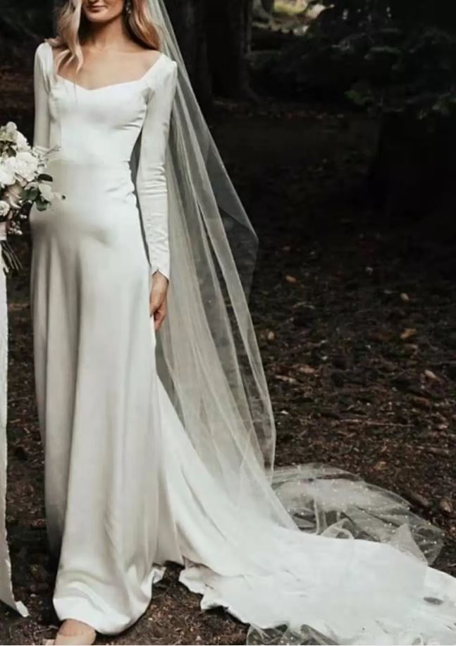 Elegant Long Sleeves Sheath Wedding Dresses Boho Garden Simple Satin Court Train Bridal Gowns