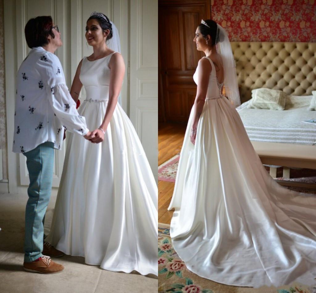 Simple Satin Bohemain Wedding Dresses Sexy Backless A Line Crystal Beaded Bridal Dress Country Beach Wedding Gowns