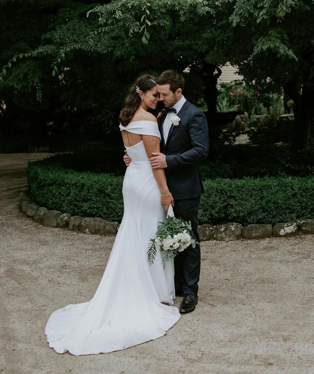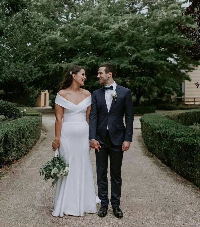 Simple Satin Mermaid Wedding Dresses Off Shoulder Hollow Back Bridal Gowns Sweep Train Wedding Dress