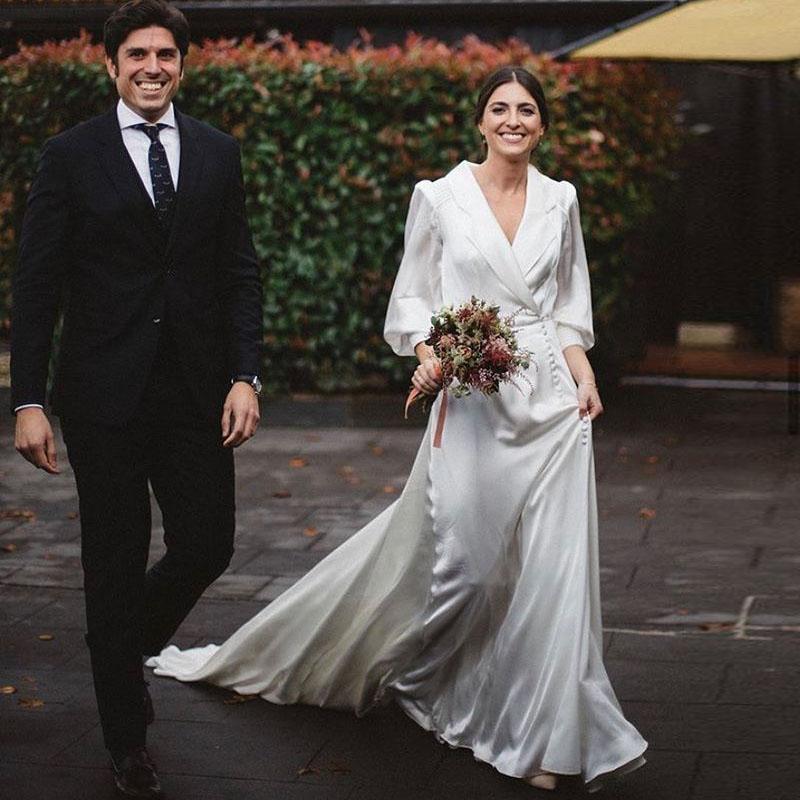 T-shirt Sleeve Sheath Wedding Dresses Simple Satin Bridal Gown V Neck Garden
