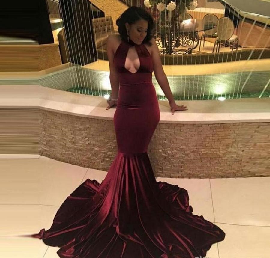 Sexy African Burgundy Velvet Prom Dress Black Girl Prom Dress Long Mermaid Women Simple Formal Party Evening Dresses
